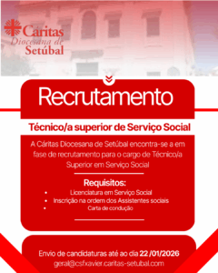 Recrutamento – Técnico/a Superior de Serviço Social 9 Janeiro, 2026pprezado Formação e Emprego, Notícias Principais Ação Solidária – 2ª Esquadra da PSP de SetúbalRecrutamento – Auxiliar de Ação Direta – M/F